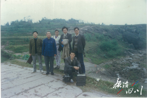 周永开以巴渠12所红色学校的史实为蓝本,组织拍摄了《巴山教魂》电视教育专题片,编纂了《热血》系列丛书,成为全市青少年思想政治教育读本。图为1992年,周永开与《巴山教魂》电视片摄制组在万源留影。