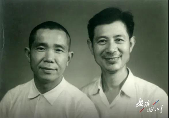 1945年的一个夜晚,在化成小学背后的山坡上,周永开郑重地向入党介绍人化成小学教导主任王朴庵递交了入党申请书,庄严宣誓入党。图为1971年8月,周永开和王朴庵老师合影。